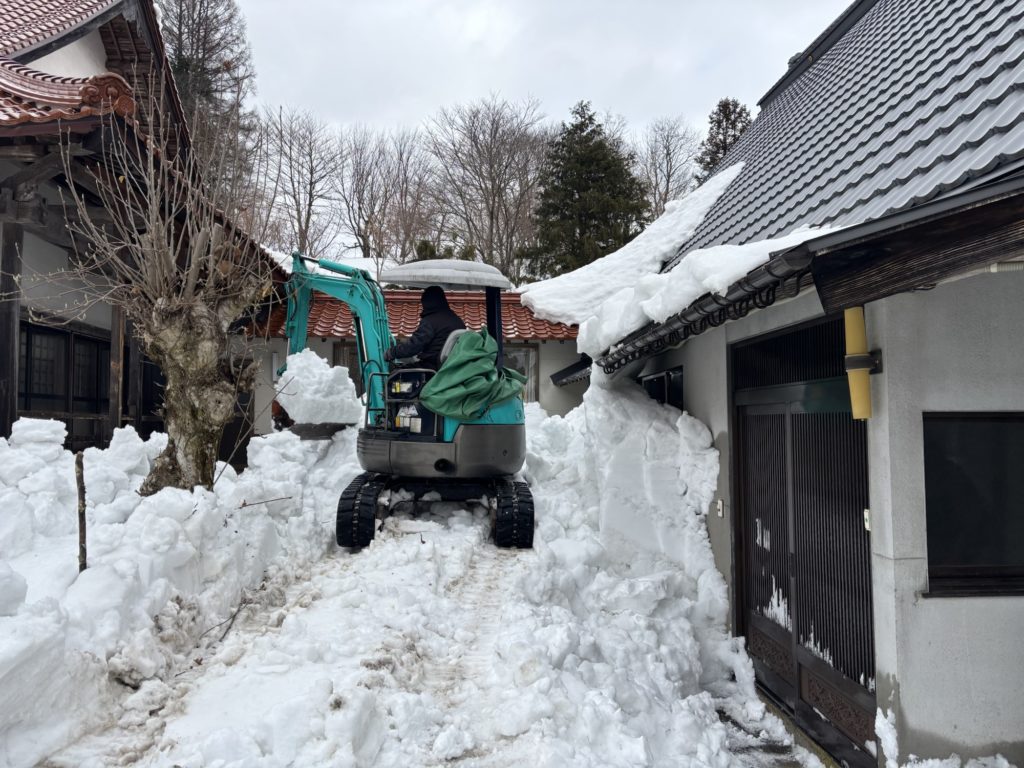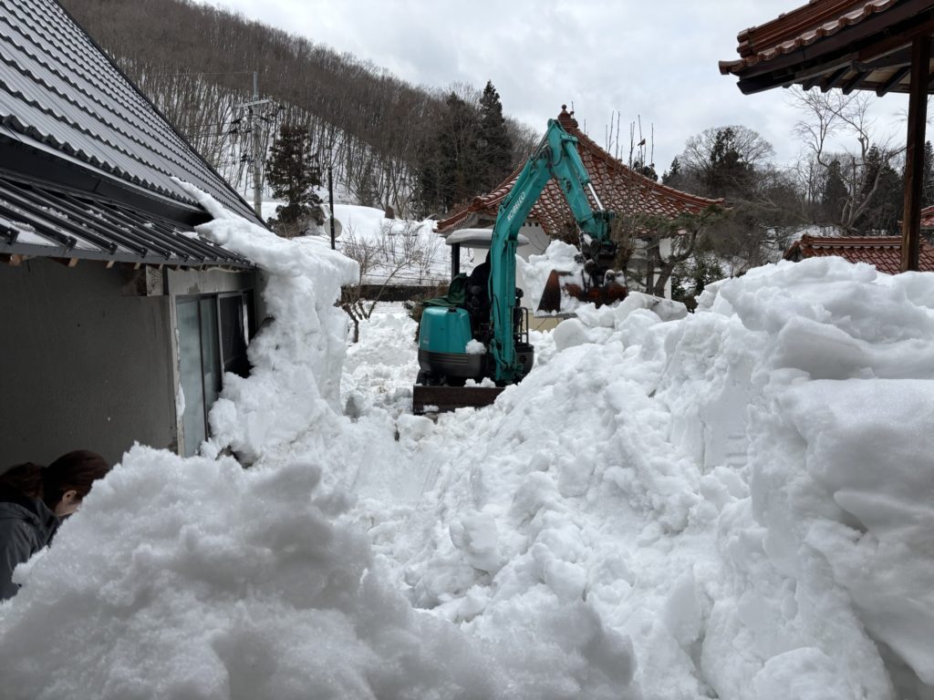 今日は除雪🙏 未分類 Twitter Facebook はてブ Pocket LINE コピー 2025.02.16 本堂や庫裏から落ち雪でカマグラ状態でしたが、同級生が重機を持って来て除雪してくれました。ありがたいことです。すると、近くのご門徒さんもきてお手伝い。この広がりがいいですね😃