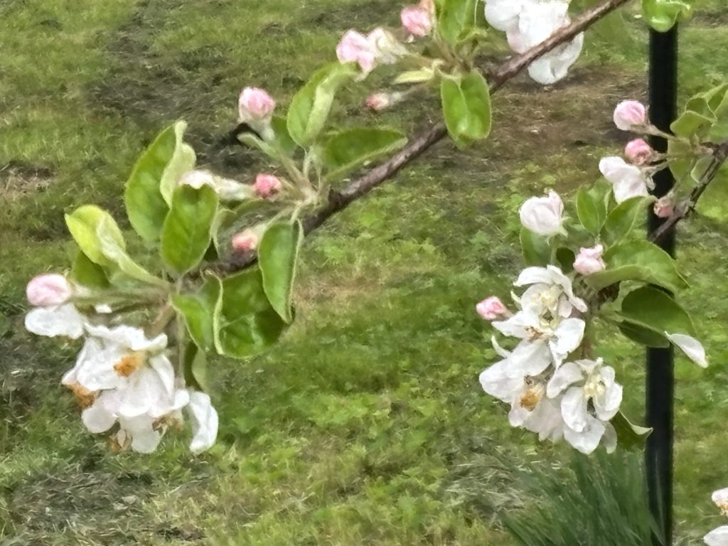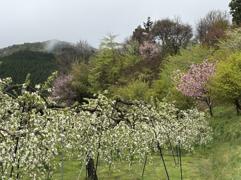 高野はりんごの花が満開です。